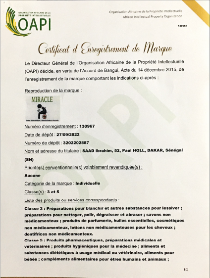 Absolument. La Crème MIRACLE détient toutes les autorisations requises, y compris l'approbation du Ministère de la Santé. C'est un produit de qualité, dont la sûreté et l'efficacité sont reconnues.